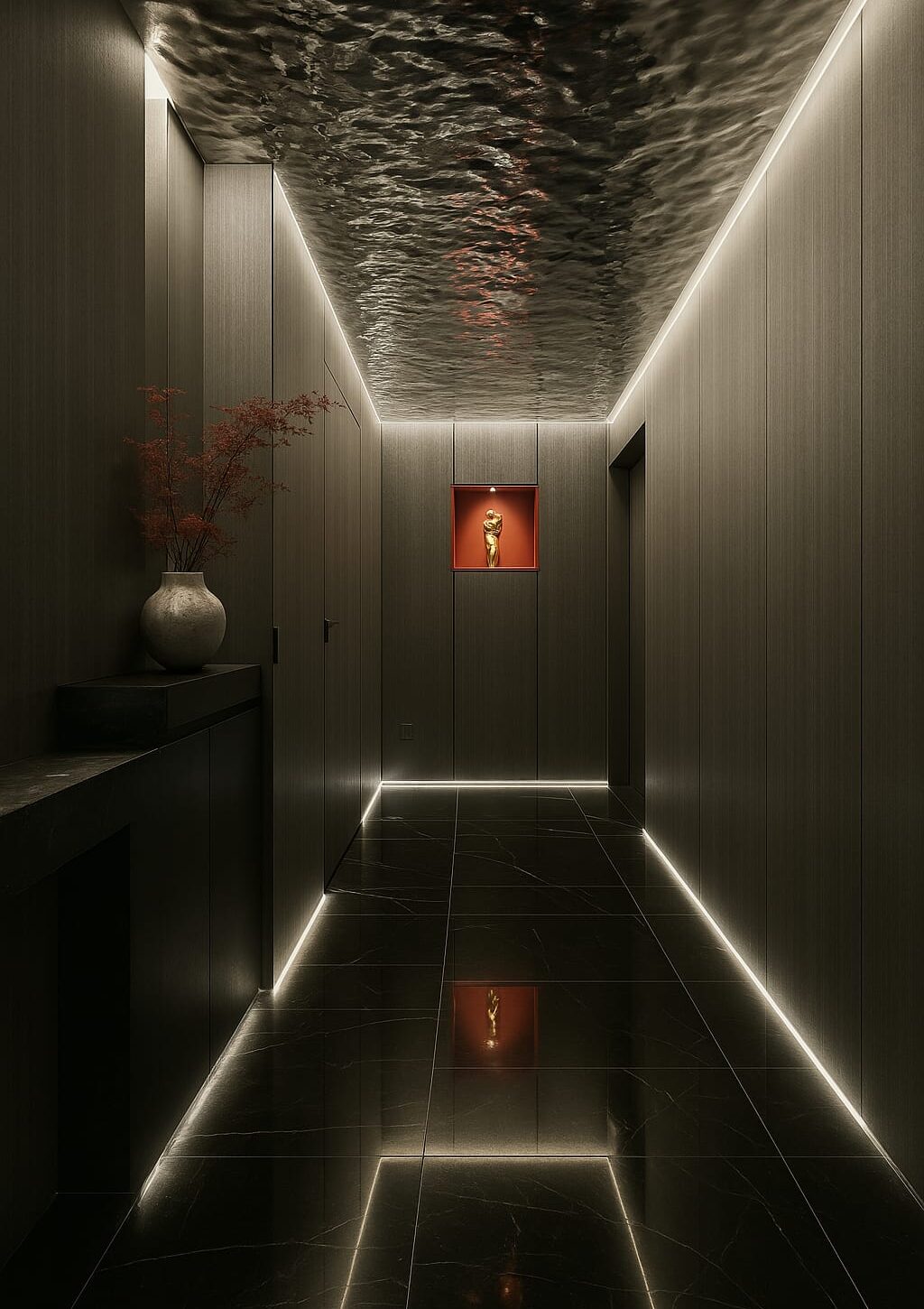 Una parete finale leggermente più intensa può accorciare otticamente la prospettiva.